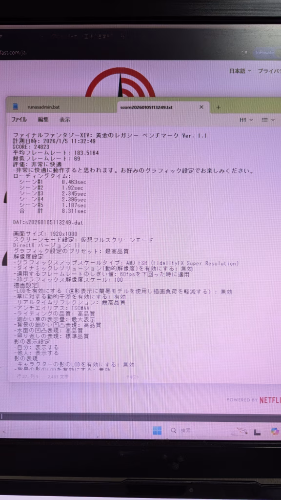 2026/01/05時点のWindows updateとチップセットドライバー、GPUドライバーで計測しております。