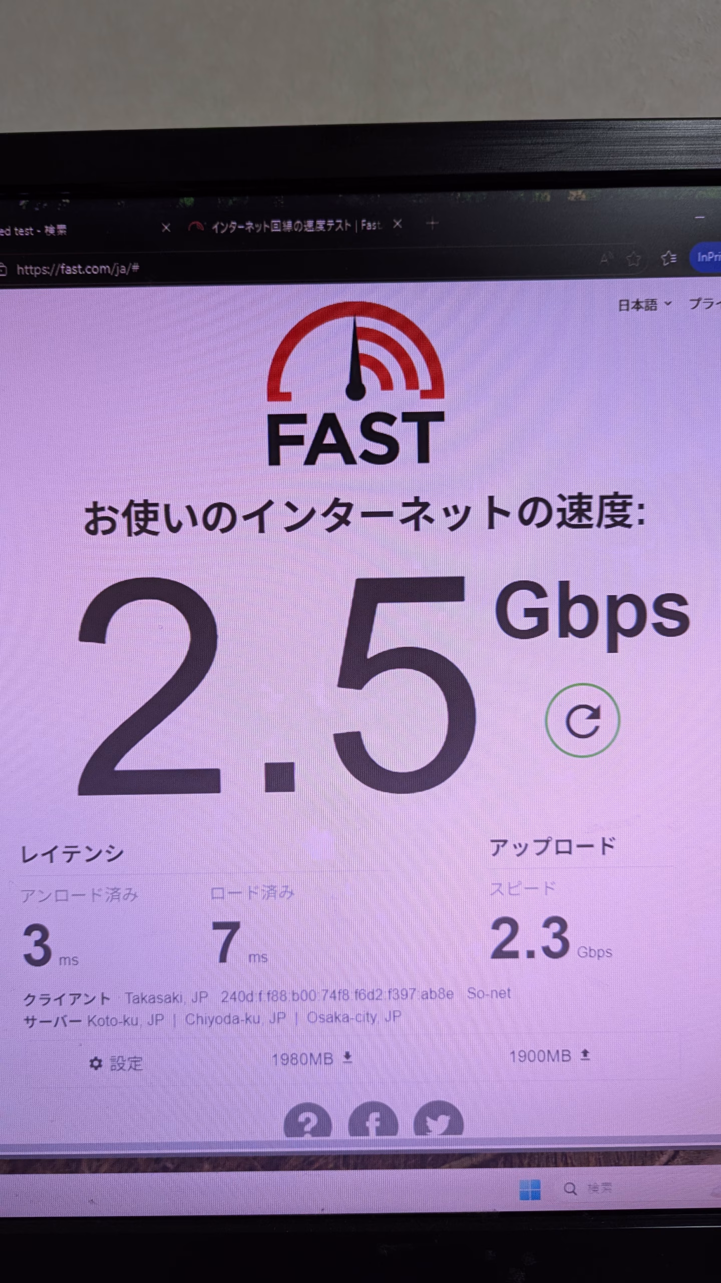 LAN通信速度 画像参照 画像1つ目有線LAN、2つ目がある場合無線LAN