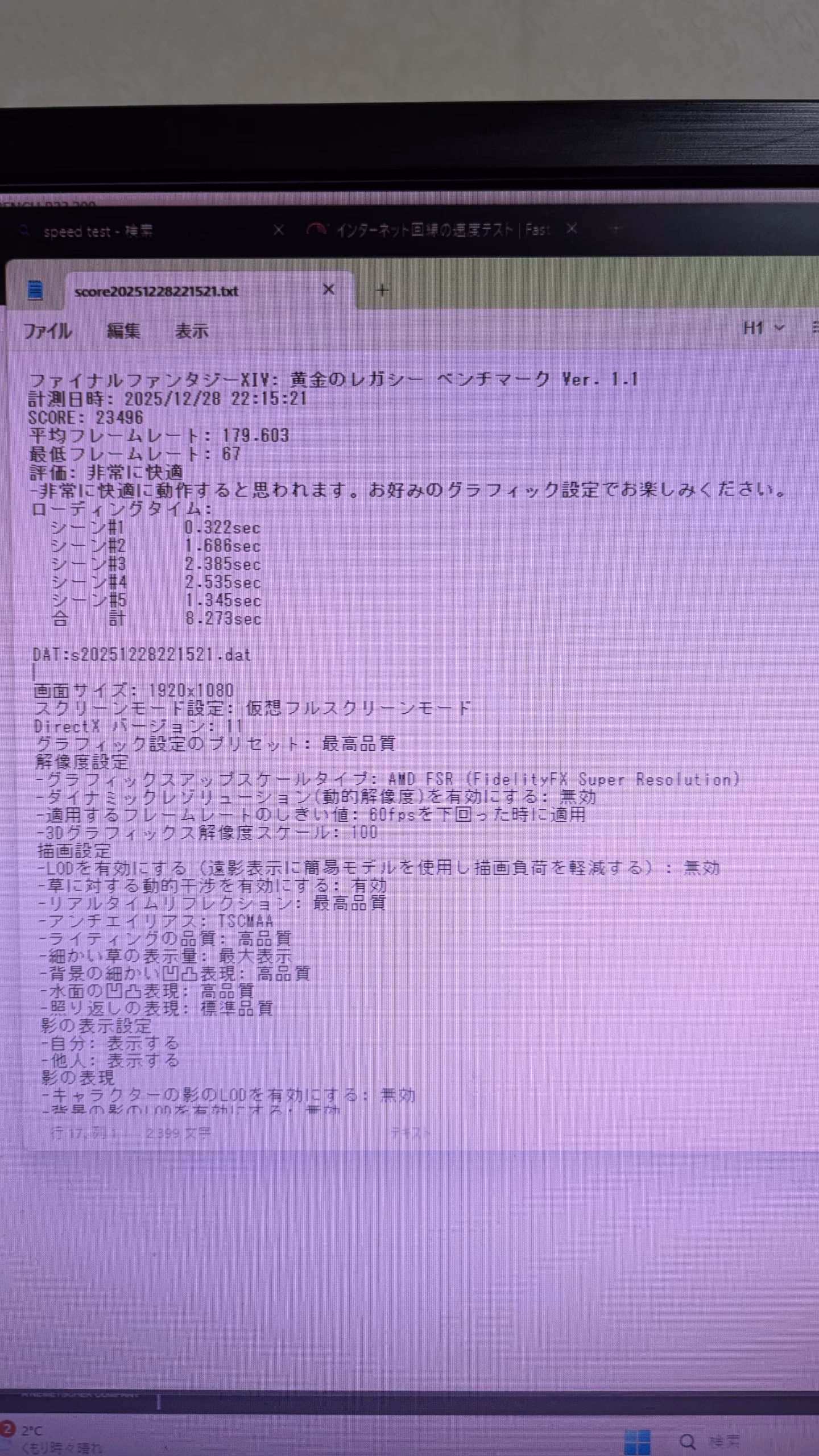 FF14 FHD 最高画質23496 平均フレームレート 179