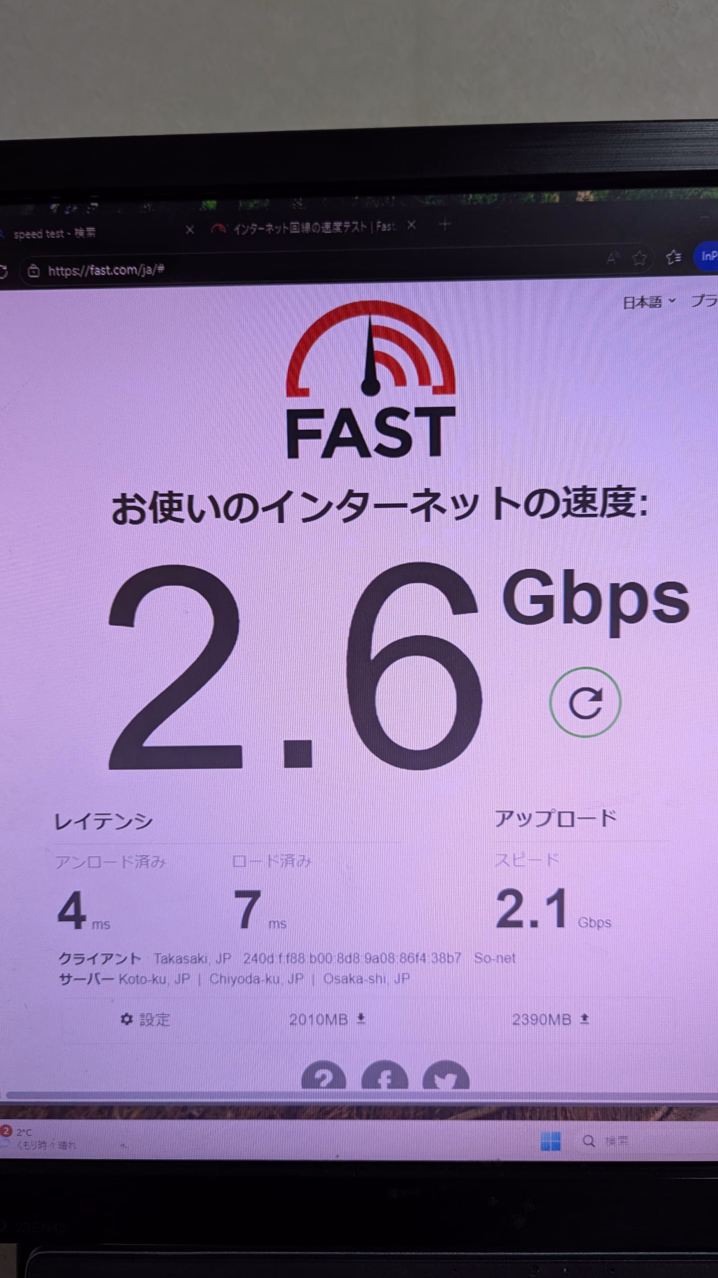 LAN通信速度 画像参照 画像1つ目有線LAN、2つ目がある場合無線LAN