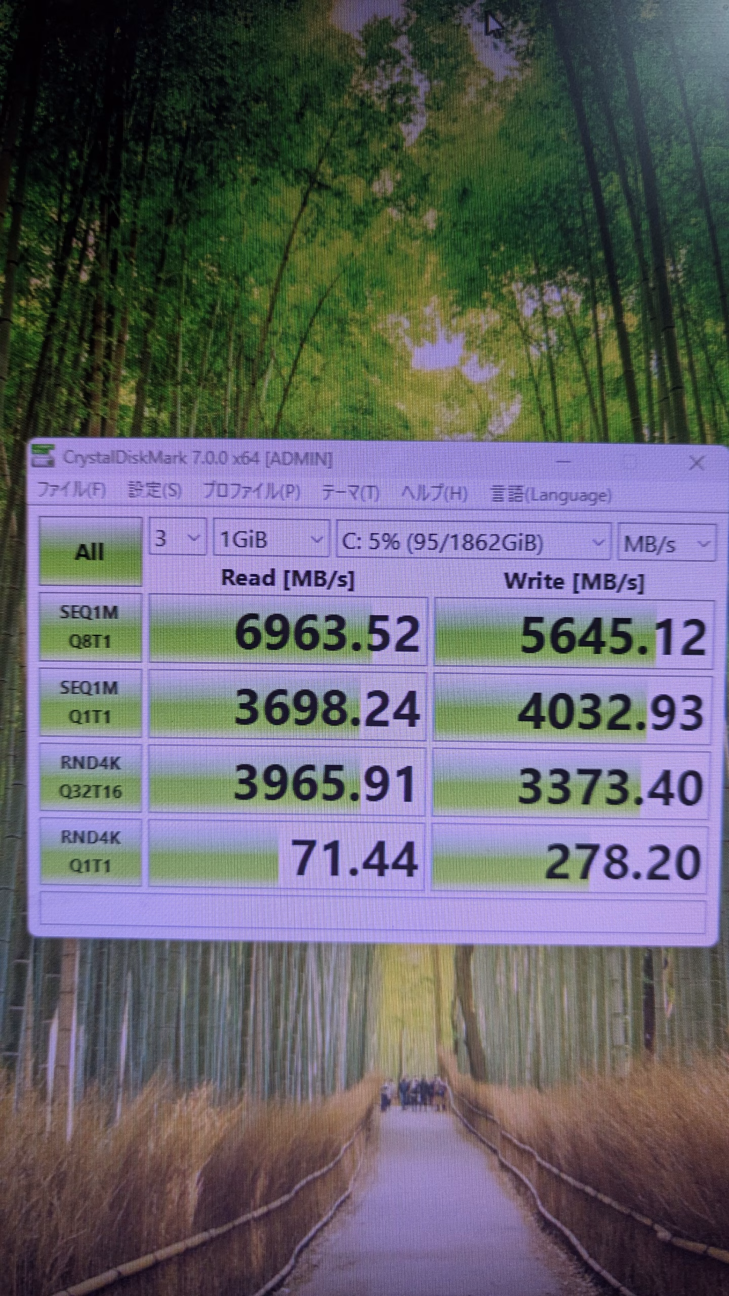 ストレージ読み込み速度 SSD 6963 HDDは省略