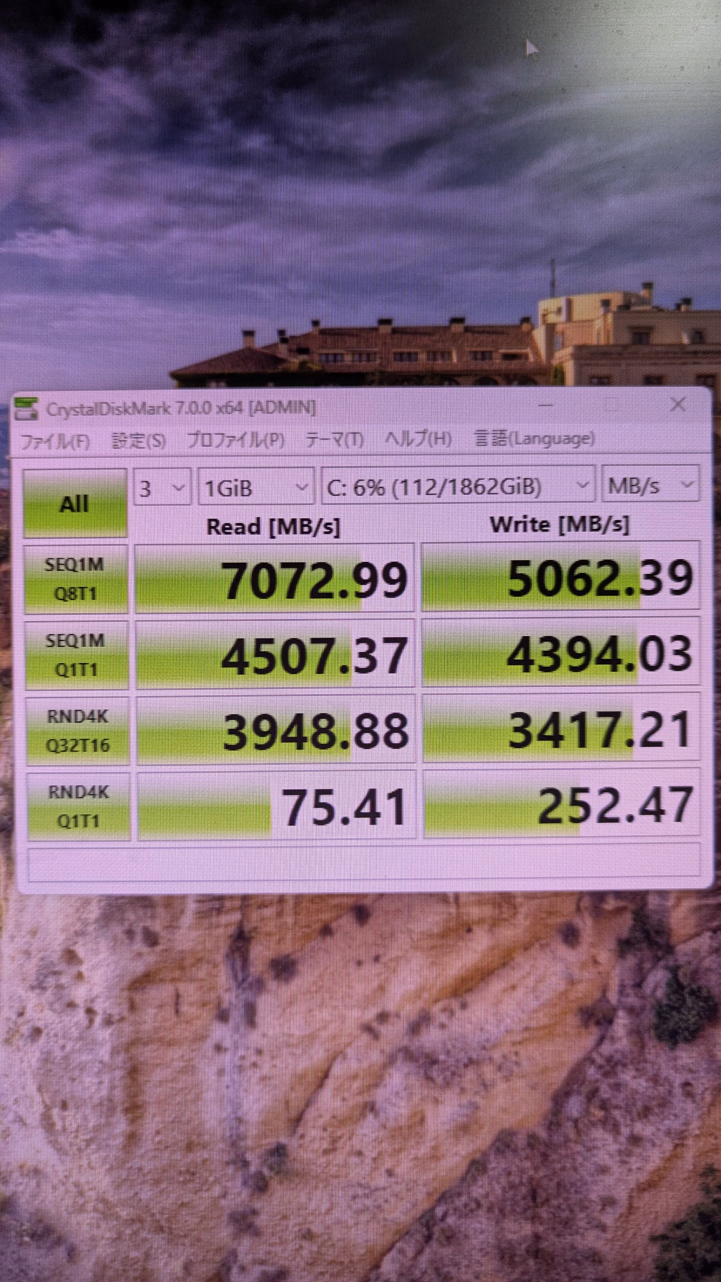 ストレージ読み込み速度 SSD 7072 HDDは省略