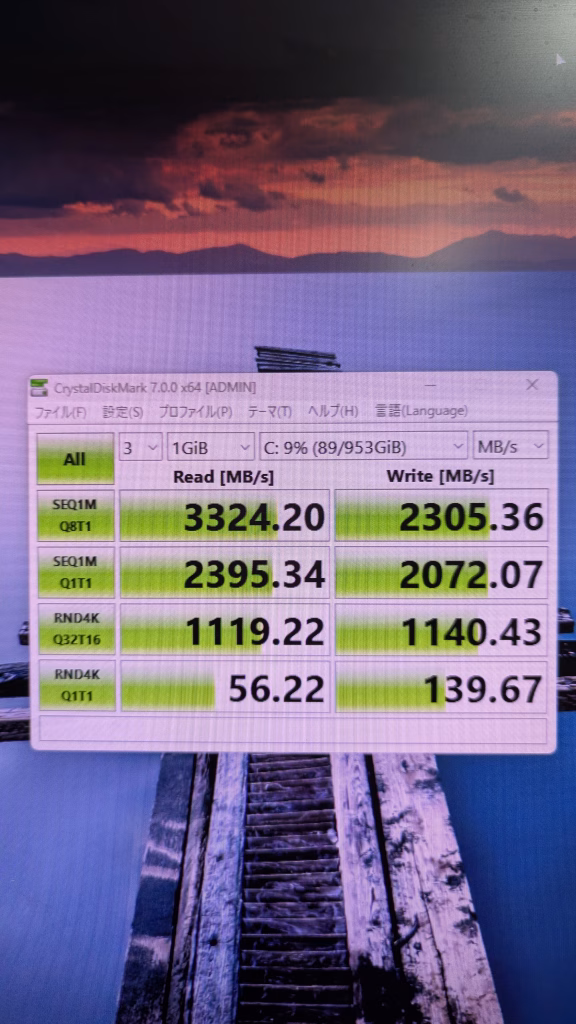 ストレージ読み込み速度 SSD 3324 HDDは省略