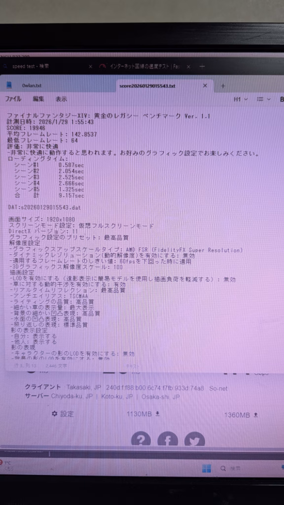 FF14 FHD 最高画質19946 平均フレームレート 142