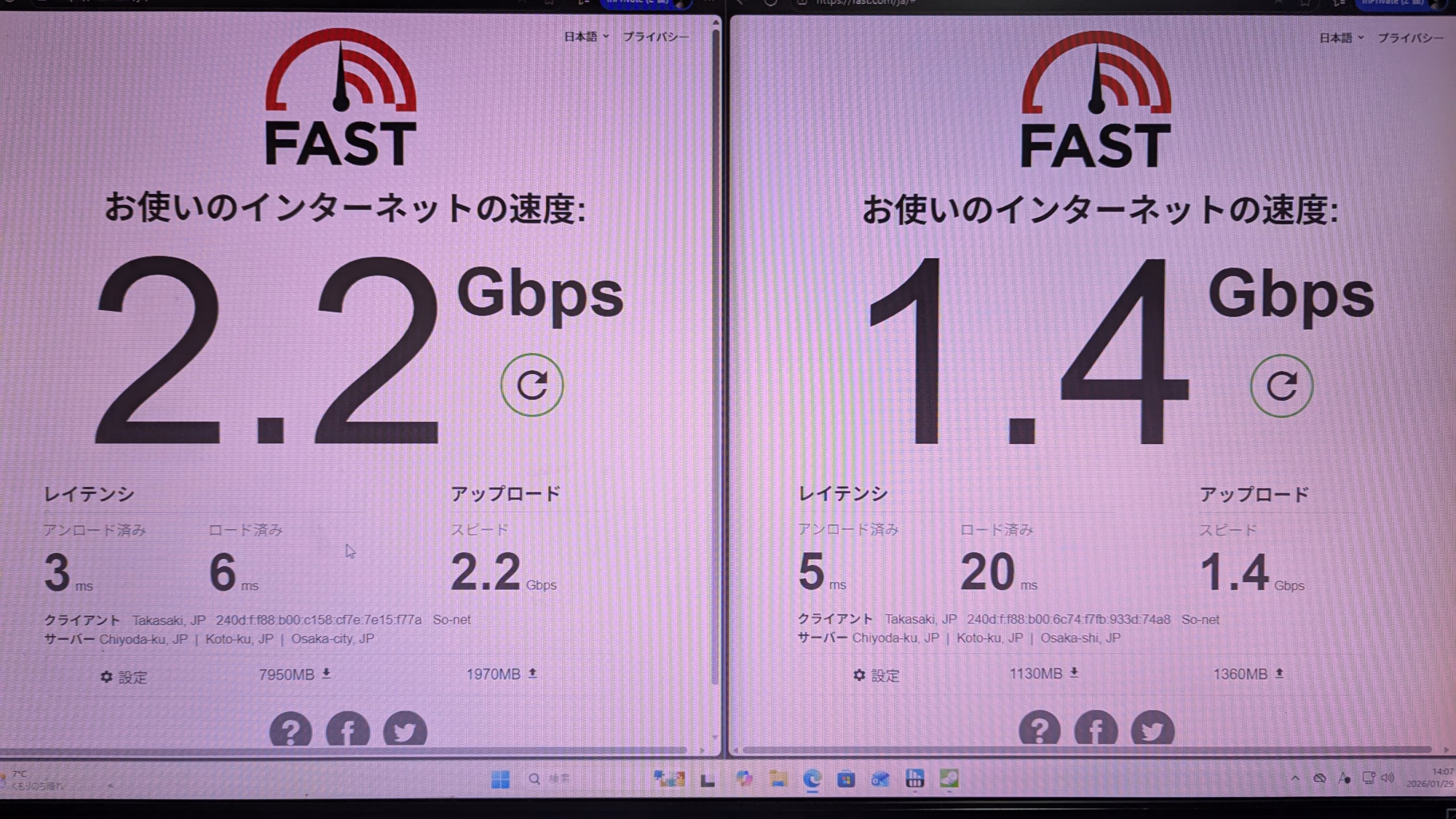 LAN通信速度 画像参照 画像1つ目有線LAN、2つ目がある場合無線LAN