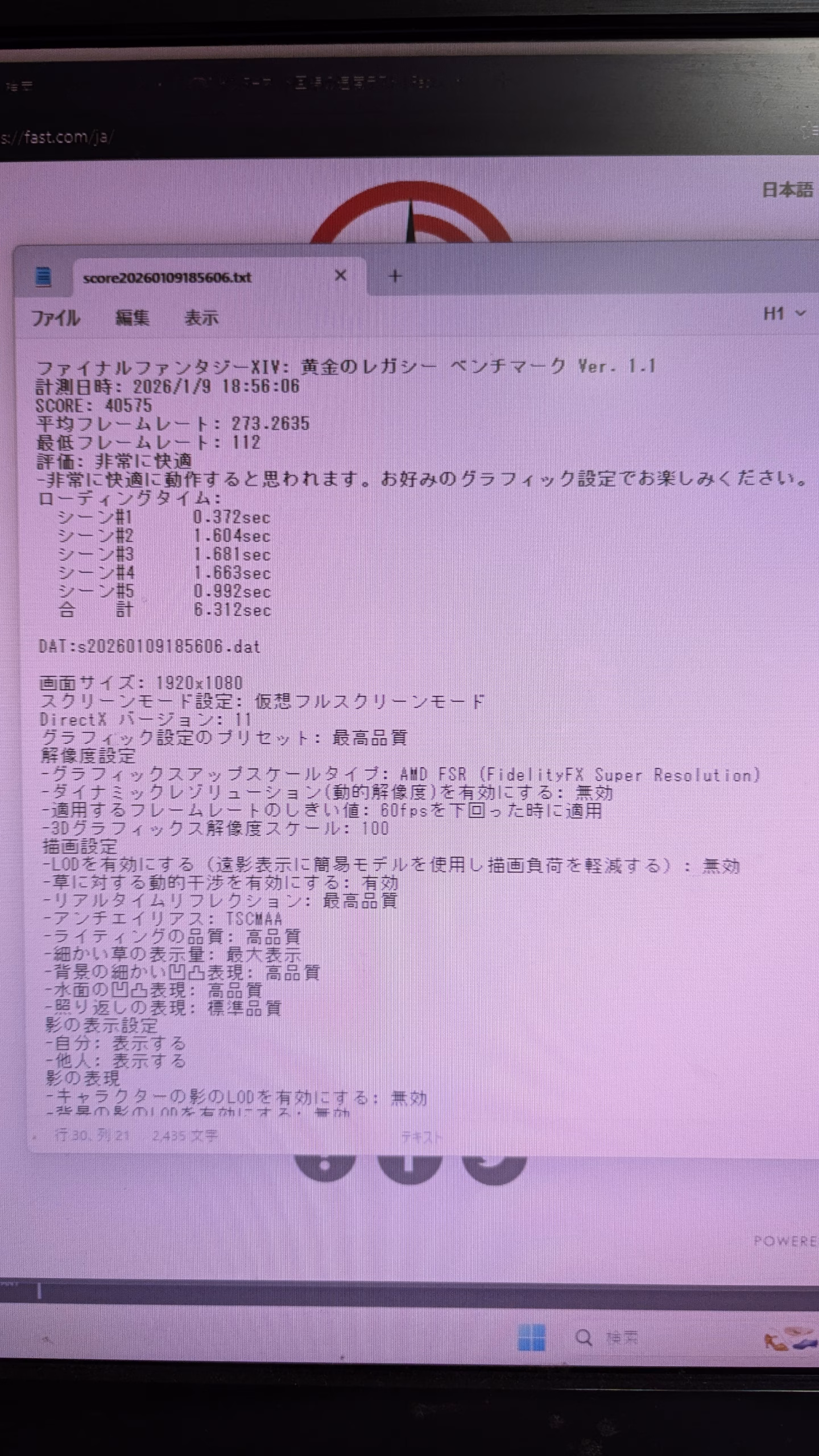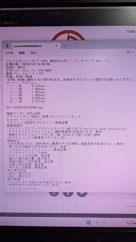 FF14 FHD 最高画質40575 平均フレームレート 273