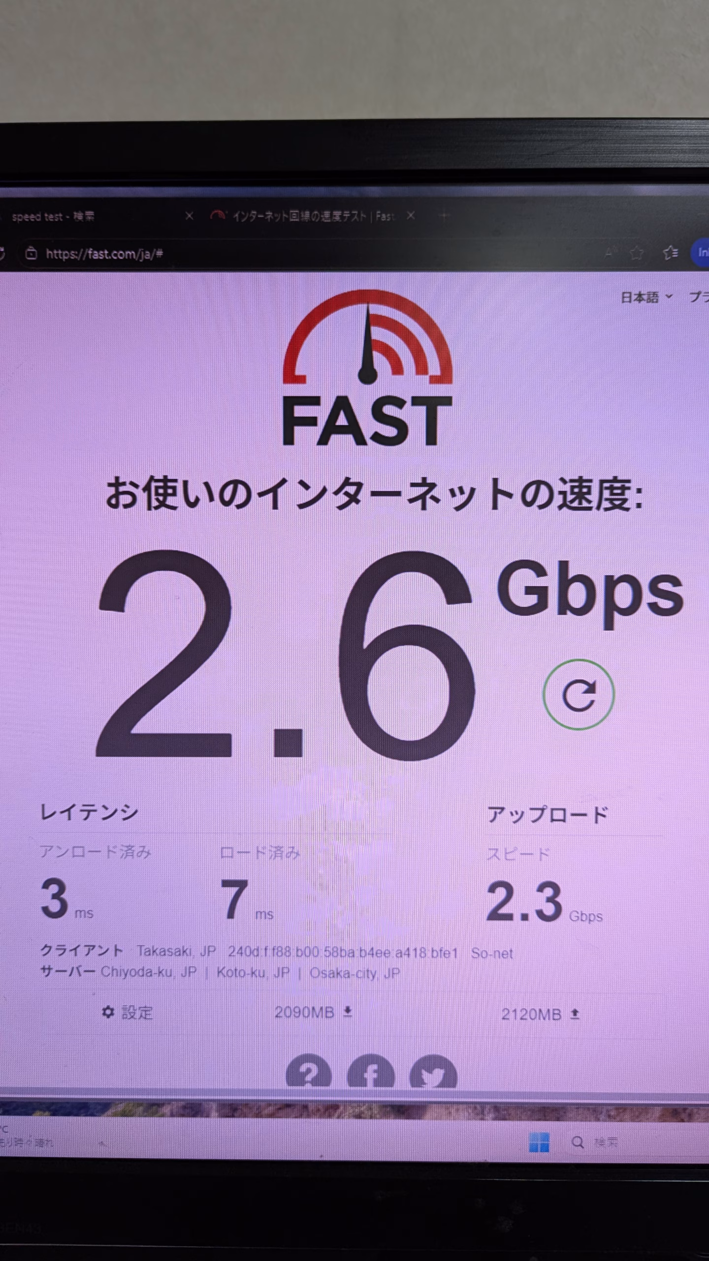 LAN通信速度 画像参照 画像1つ目有線LAN、2つ目がある場合無線LAN