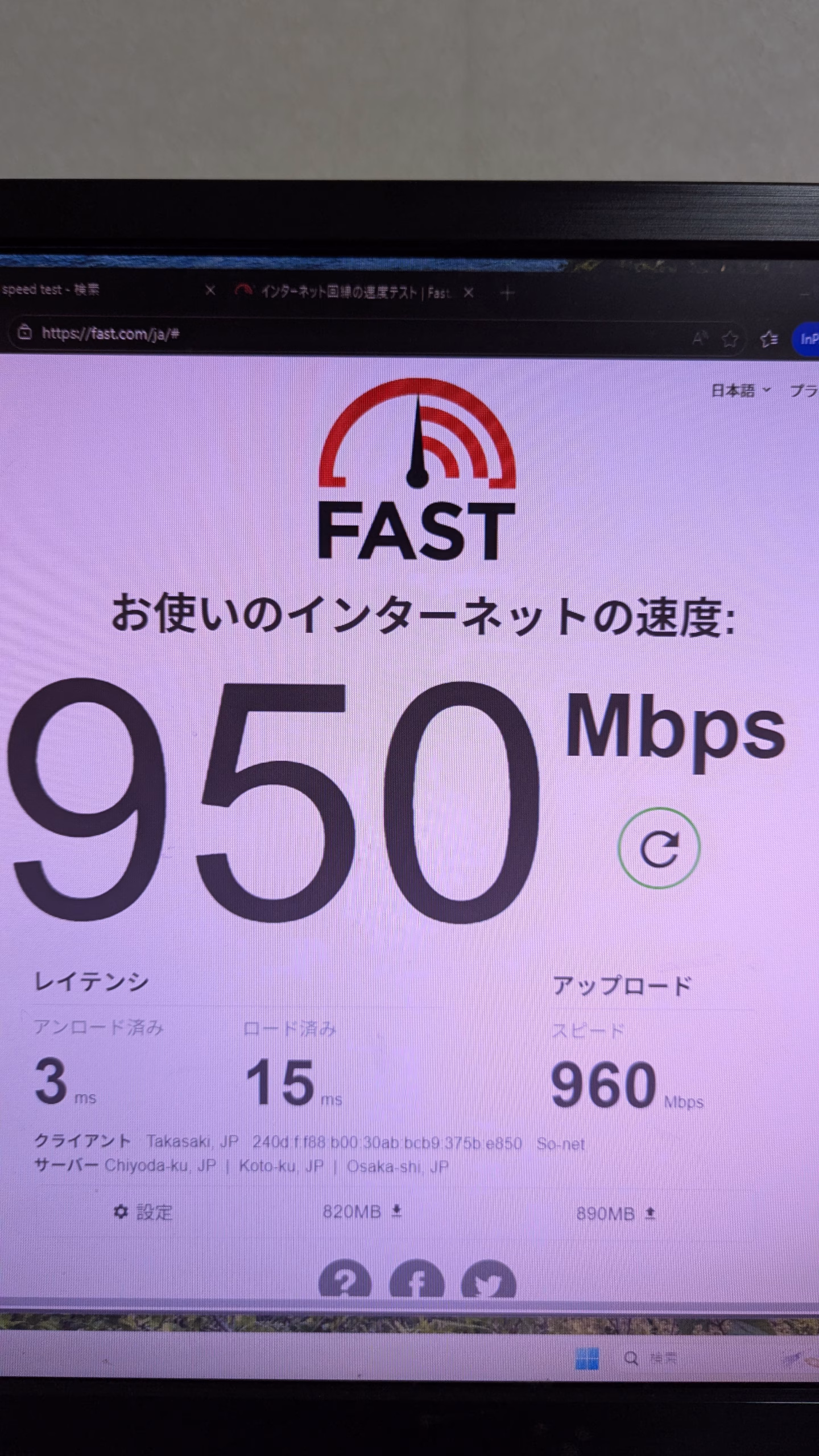 LAN通信速度 画像参照 画像1つ目有線LAN、2つ目がある場合無線LAN