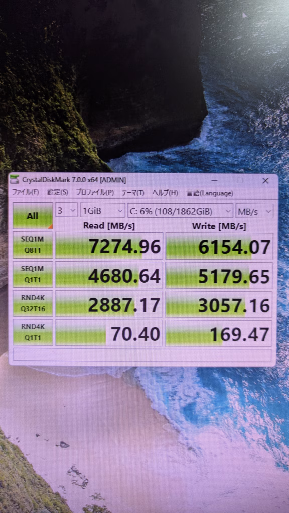 ストレージ読み込み速度 SSD 7274 HDDは省略