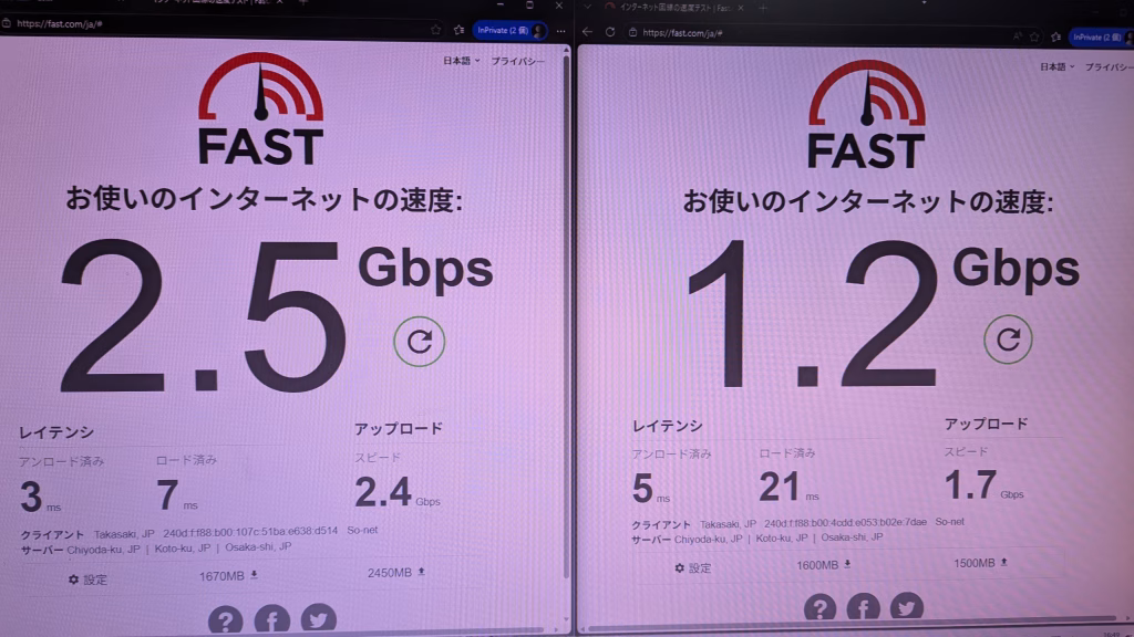LAN通信速度 画像参照 画像1つ目有線LAN、2つ目がある場合無線LAN