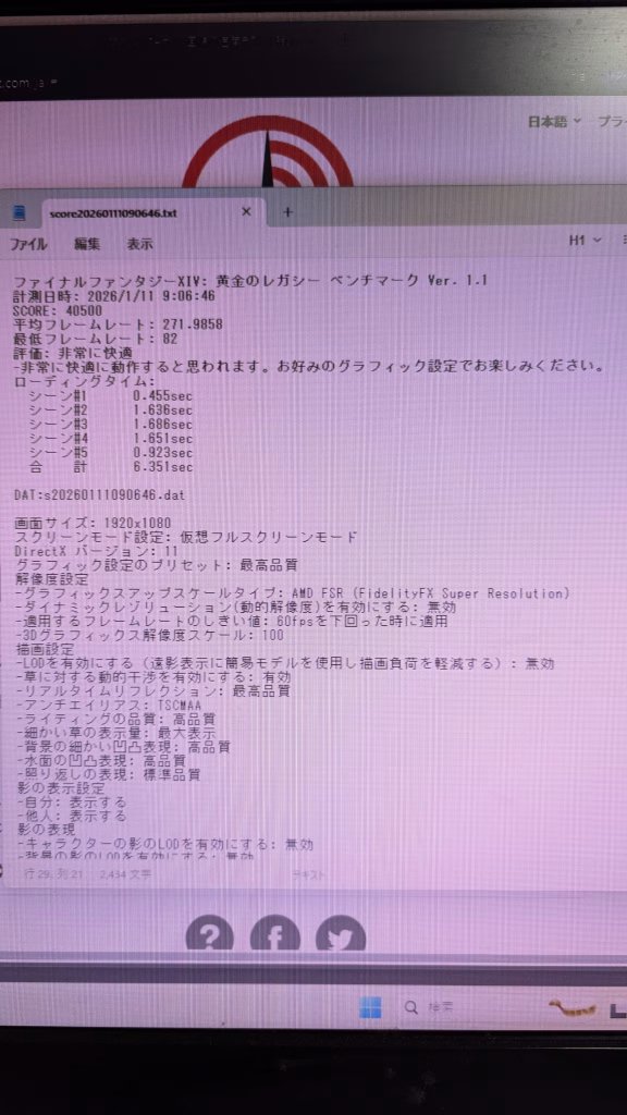 FF14 FHD 最高画質40500 平均フレームレート 271
