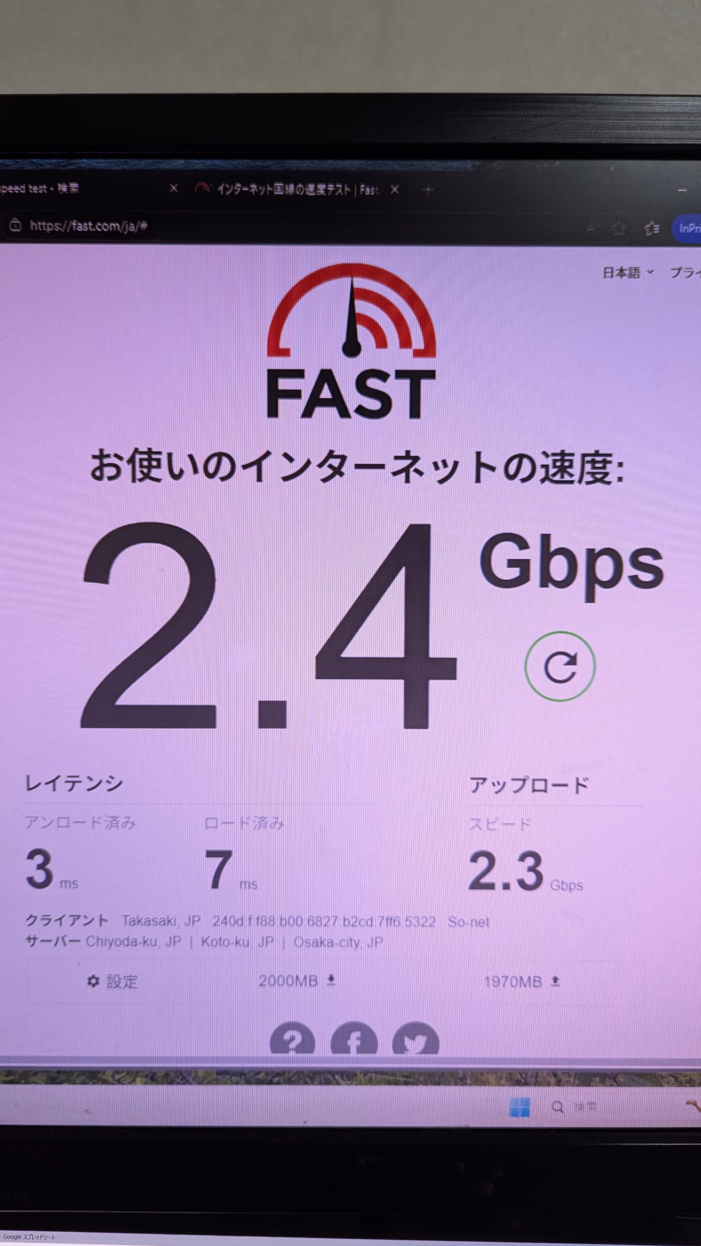 LAN通信速度 画像参照 画像1つ目有線LAN、2つ目がある場合無線LAN
