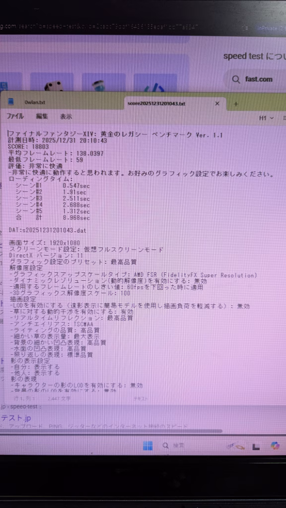 FF14 FHD 最高画質18803 平均フレームレート 138