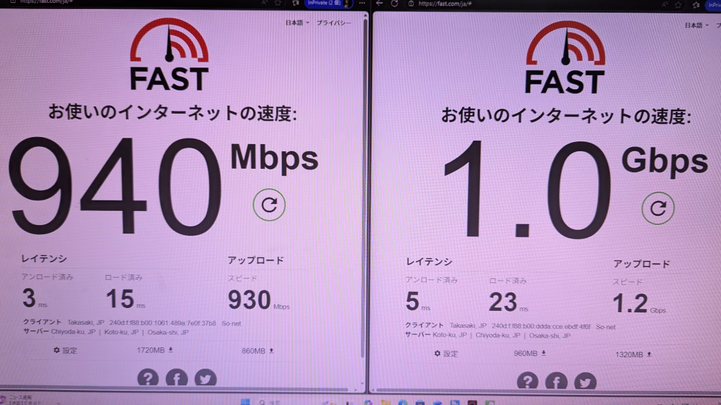LAN通信速度 画像参照 画像1つ目有線LAN、2つ目がある場合無線LAN