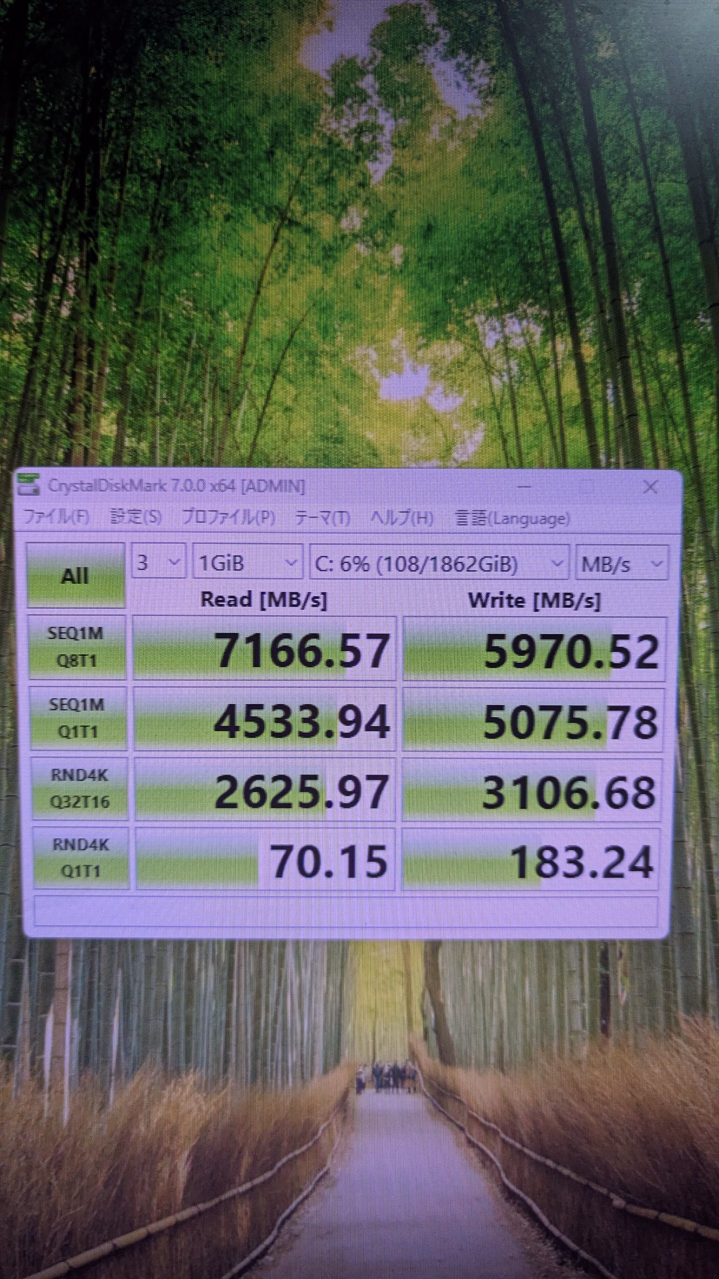 ストレージ読み込み速度 SSD 7166 HDDは省略