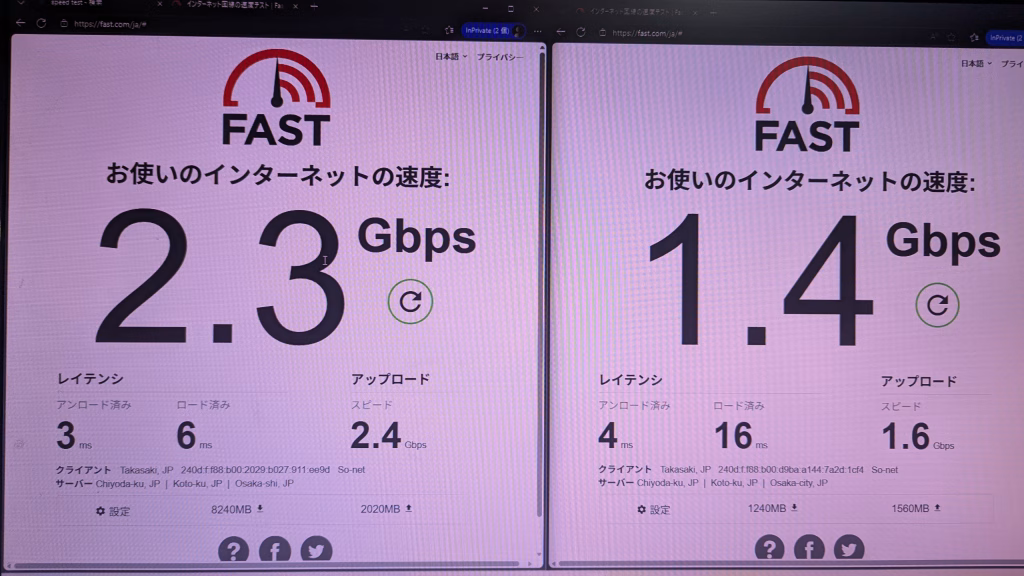 LAN通信速度 画像参照 画像1つ目有線LAN、2つ目がある場合無線LAN