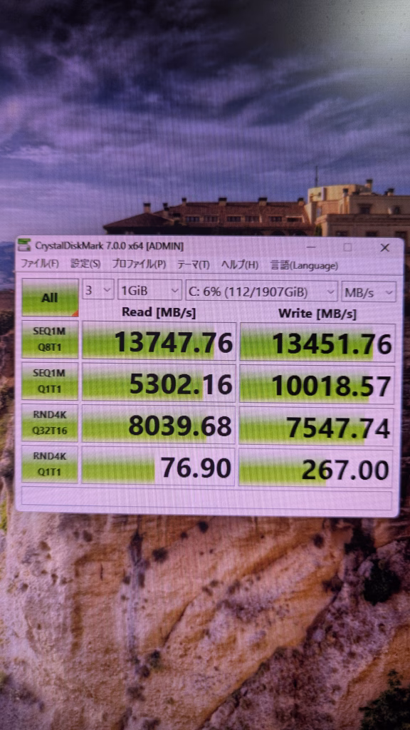 ストレージ読み込み速度 SSD 13747 HDDは省略