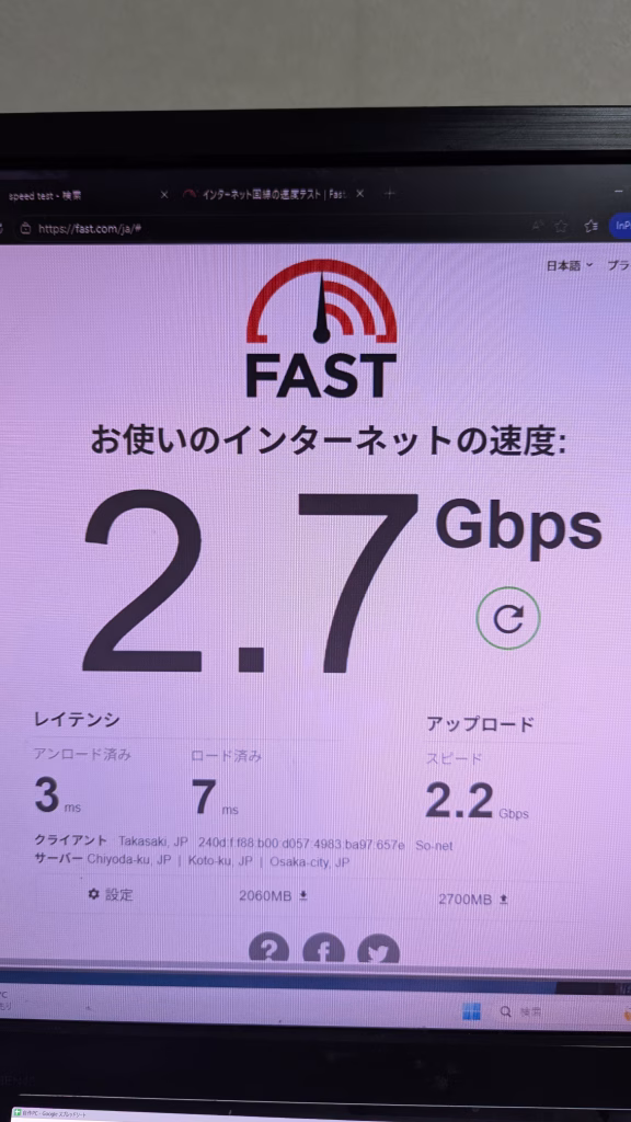 LAN通信速度 画像参照 画像1つ目有線LAN、2つ目がある場合無線LAN