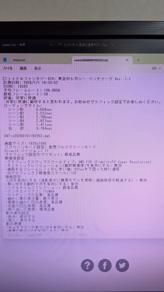 FF14 FHD 最高画質18593 平均フレームレート 136