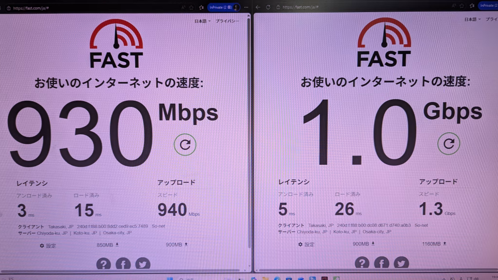 LAN通信速度 画像参照 画像1つ目有線LAN、2つ目がある場合無線LAN