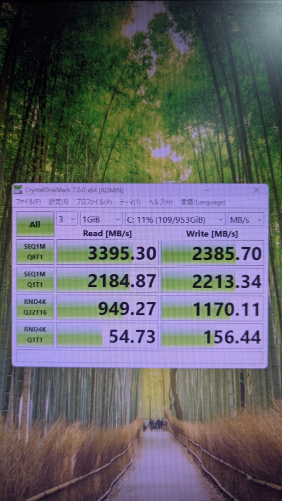 ストレージ読み込み速度 SSD 3395 HDDは省略