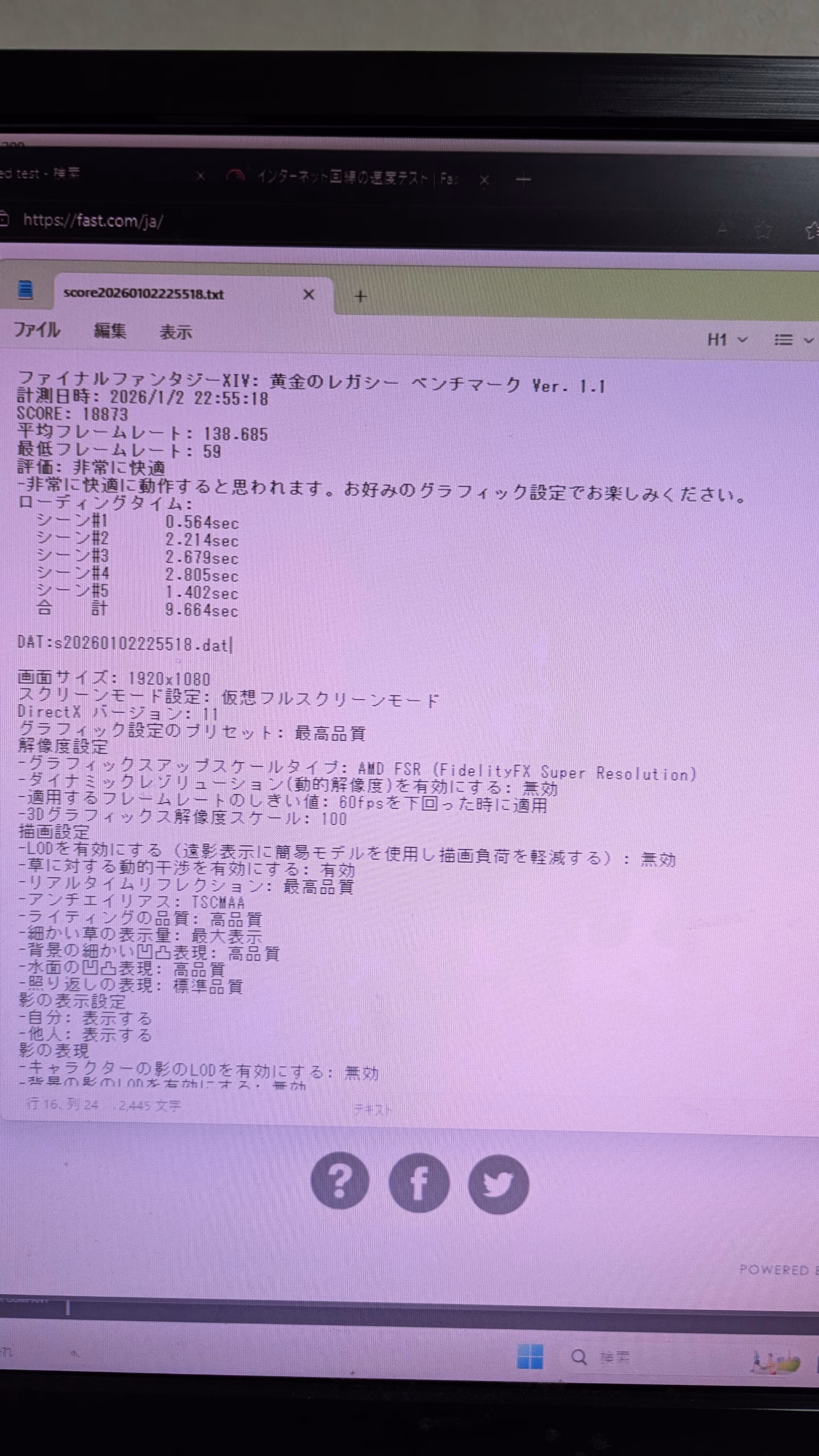 FF14 FHD 最高画質18873 平均フレームレート 138
