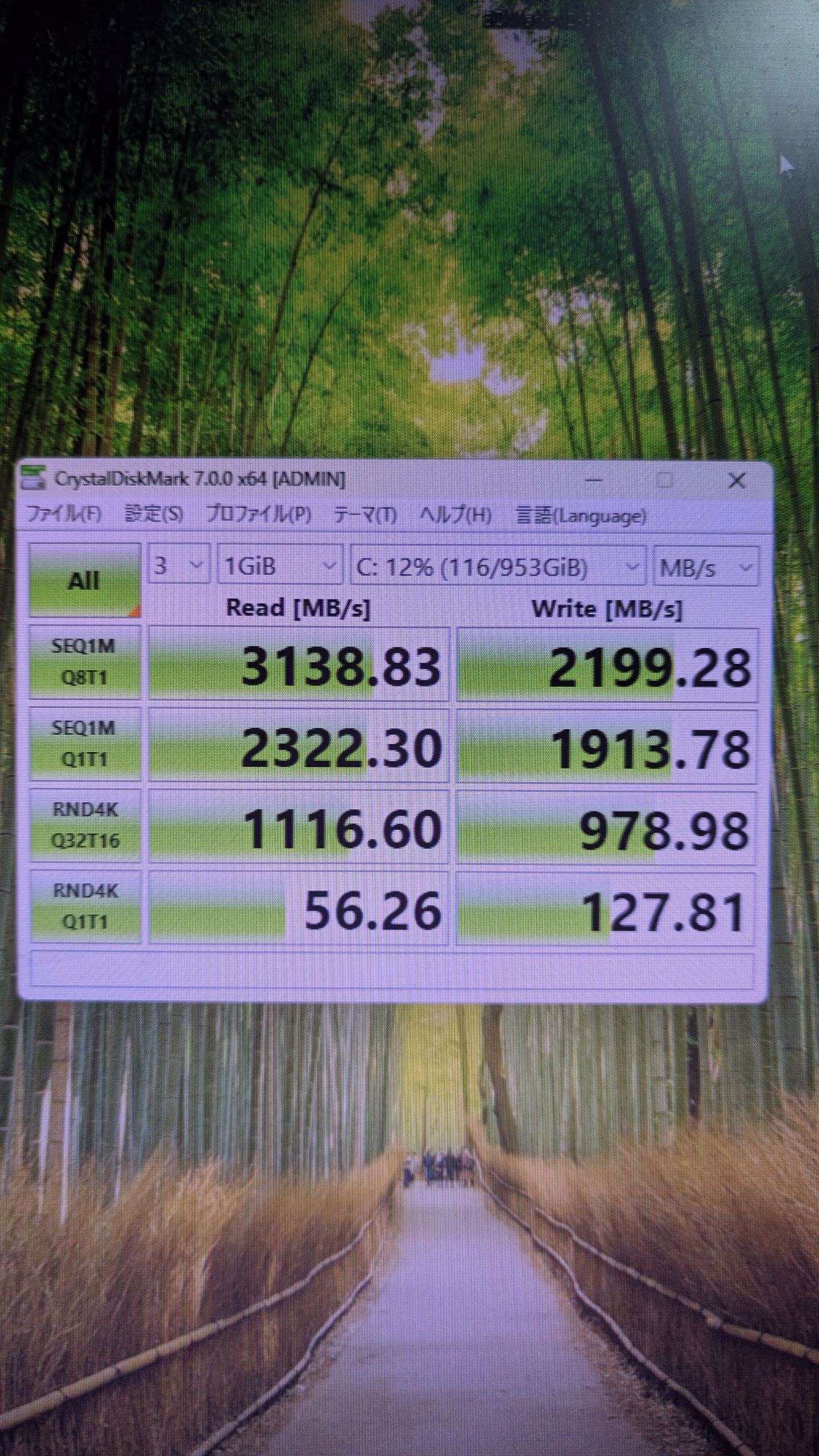 ストレージ読み込み速度 SSD 3138 HDDは省略