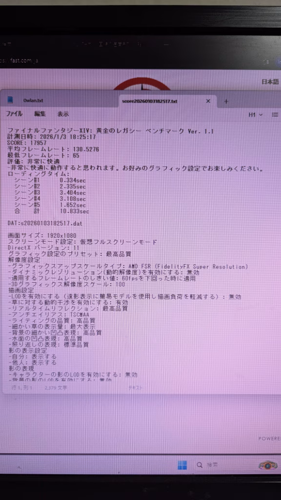 FF14 FHD 最高画質17957 平均フレームレート 130