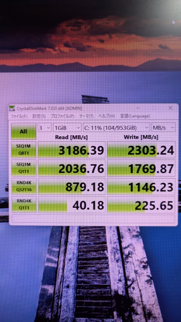 ストレージ読み込み速度 SSD 3186 HDDは省略