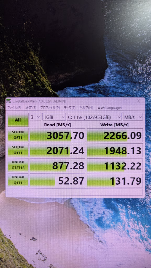 ストレージ読み込み速度 SSD 3057 HDDは省略