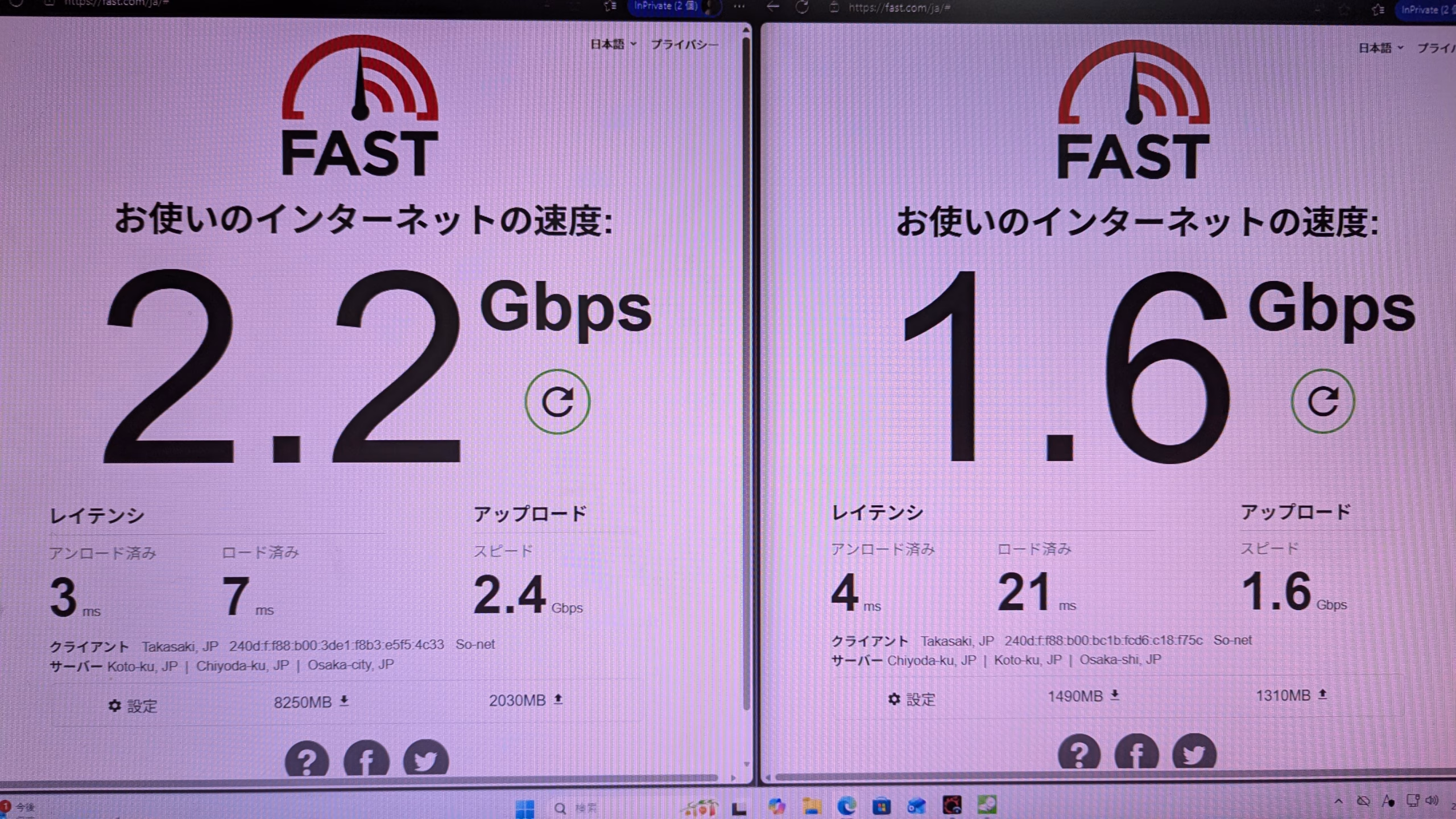 LAN通信速度 画像参照 画像1つ目有線LAN、2つ目がある場合無線LAN