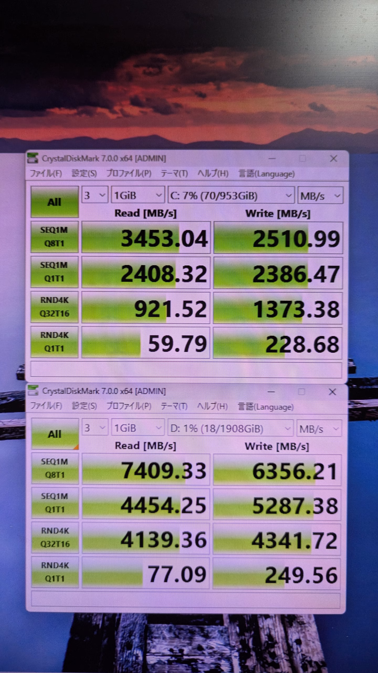 ストレージ読み込み速度 SSD 3453 7409 HDDは省略