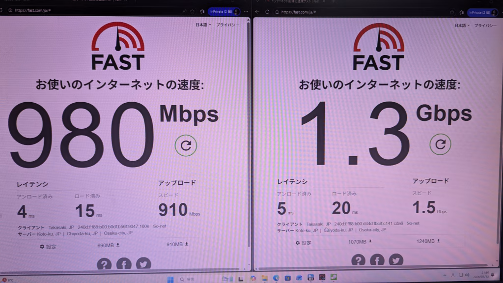 LAN通信速度 画像参照 画像1つ目有線LAN、2つ目がある場合無線LAN