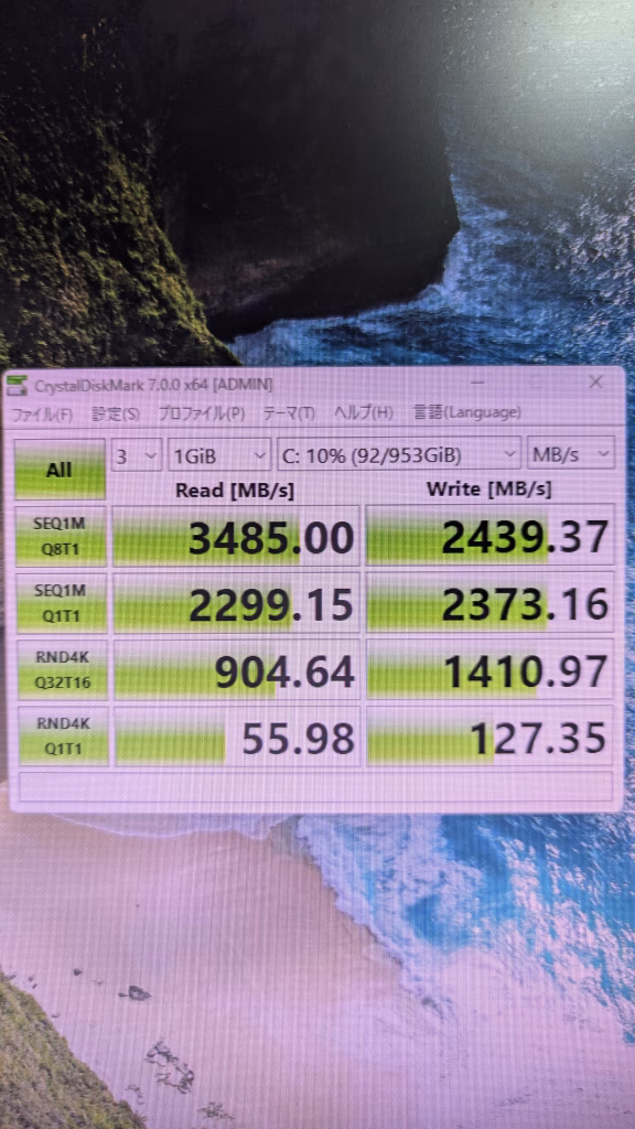 ストレージ読み込み速度 SSD 3485 HDDは省略