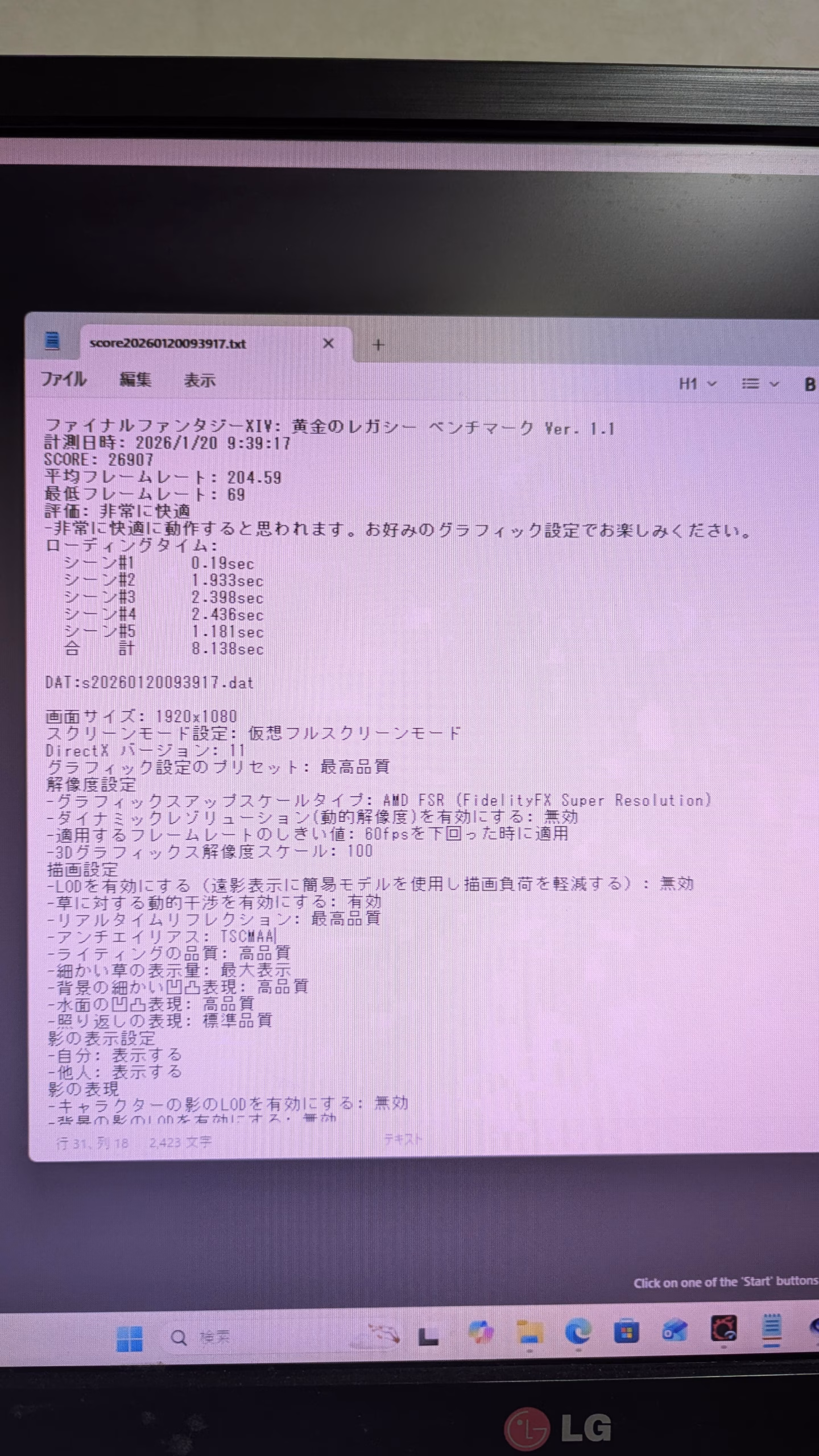 FF14 FHD 最高画質26907 平均フレームレート 204