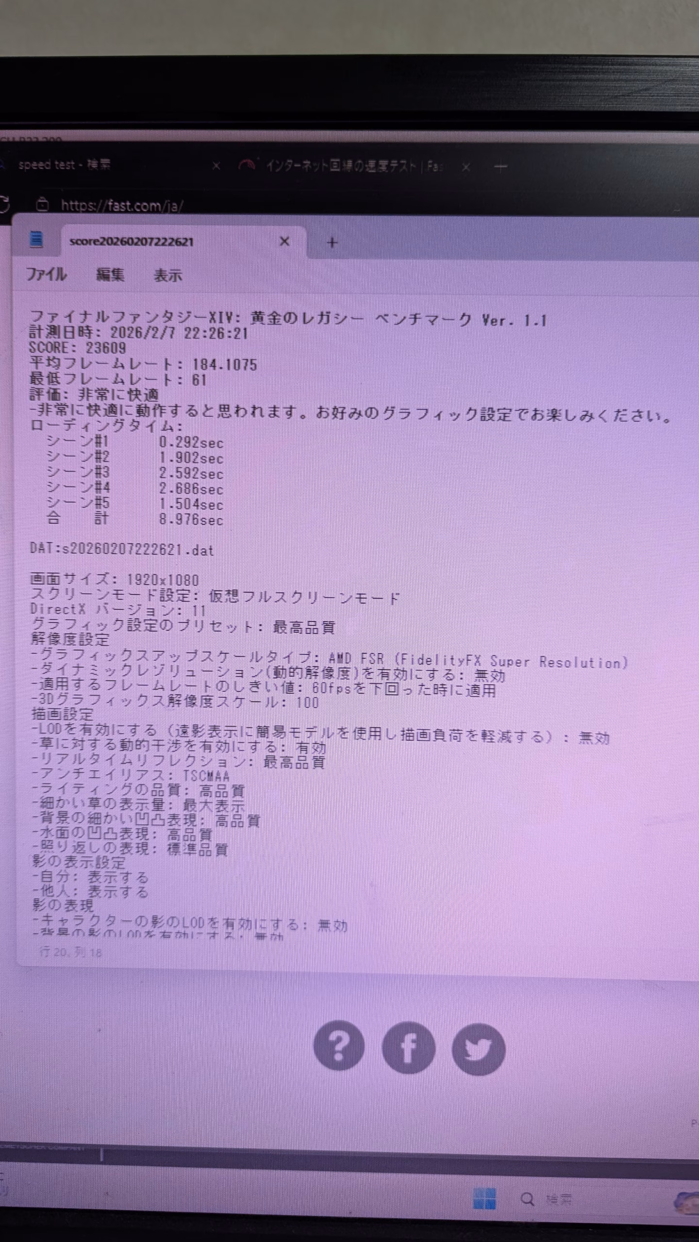 FF14 FHD 最高画質23609 平均フレームレート 184
