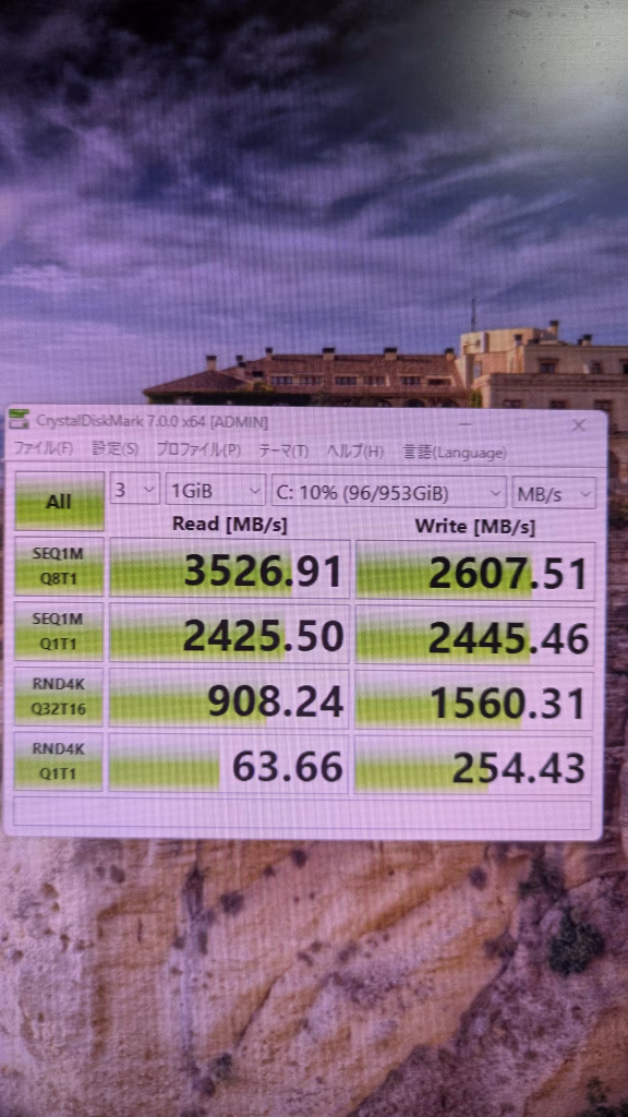 ストレージ読み込み速度 SSD 3526 HDDは省略