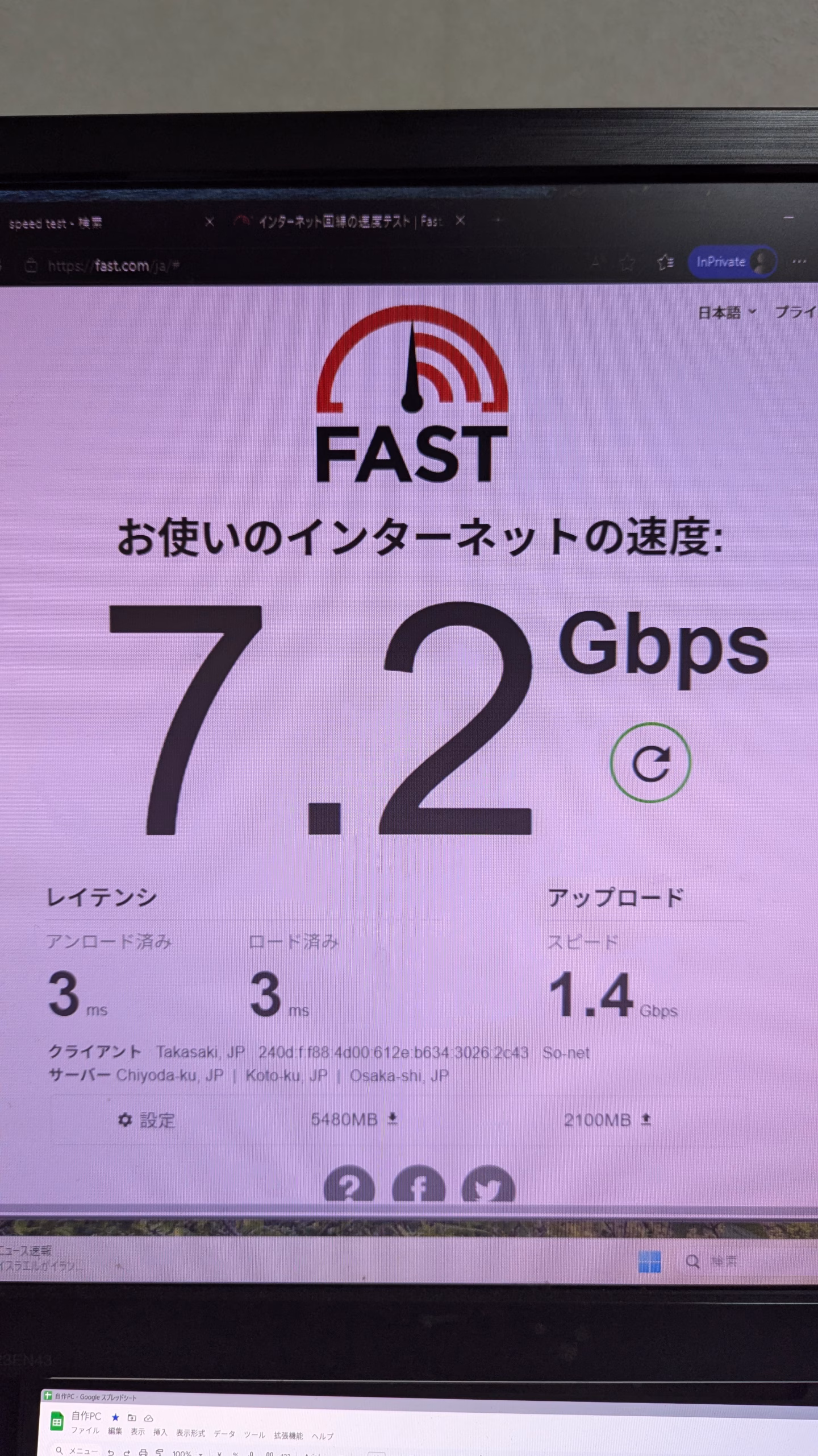 LAN通信速度 画像参照 画像1つ目有線LAN、2つ目がある場合無線LAN