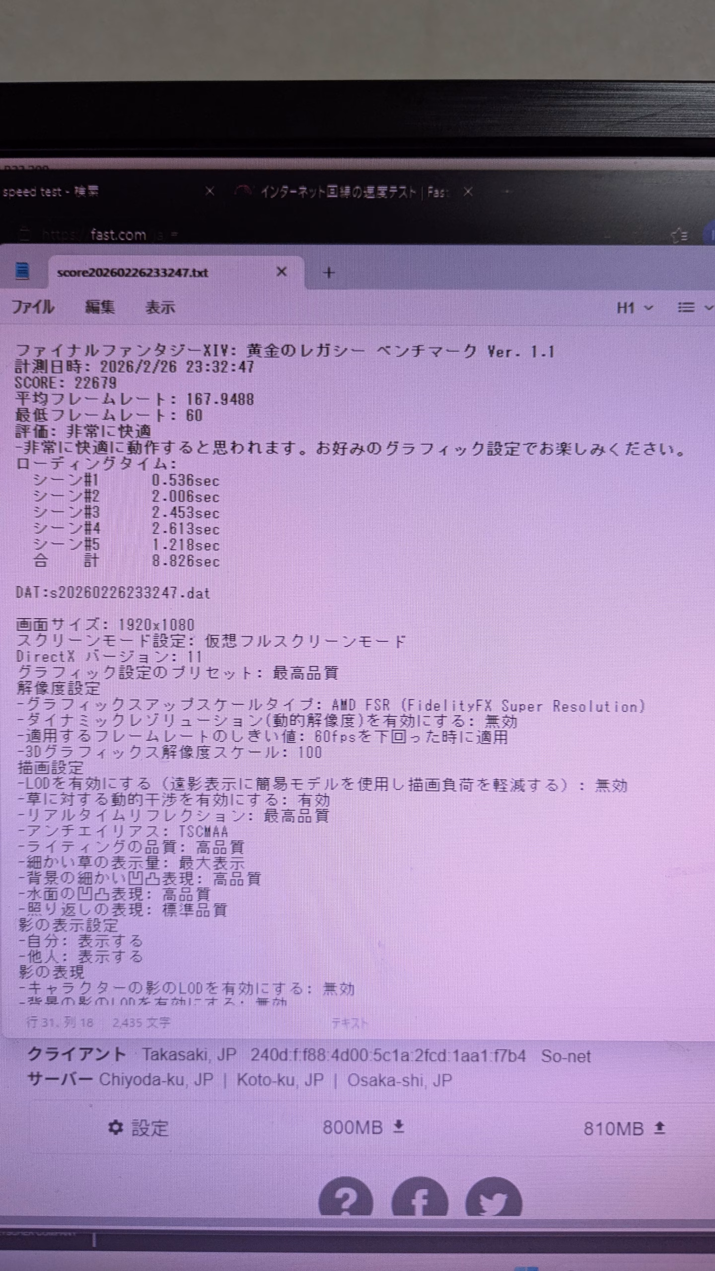FF14 FHD 最高画質22679 平均フレームレート 167