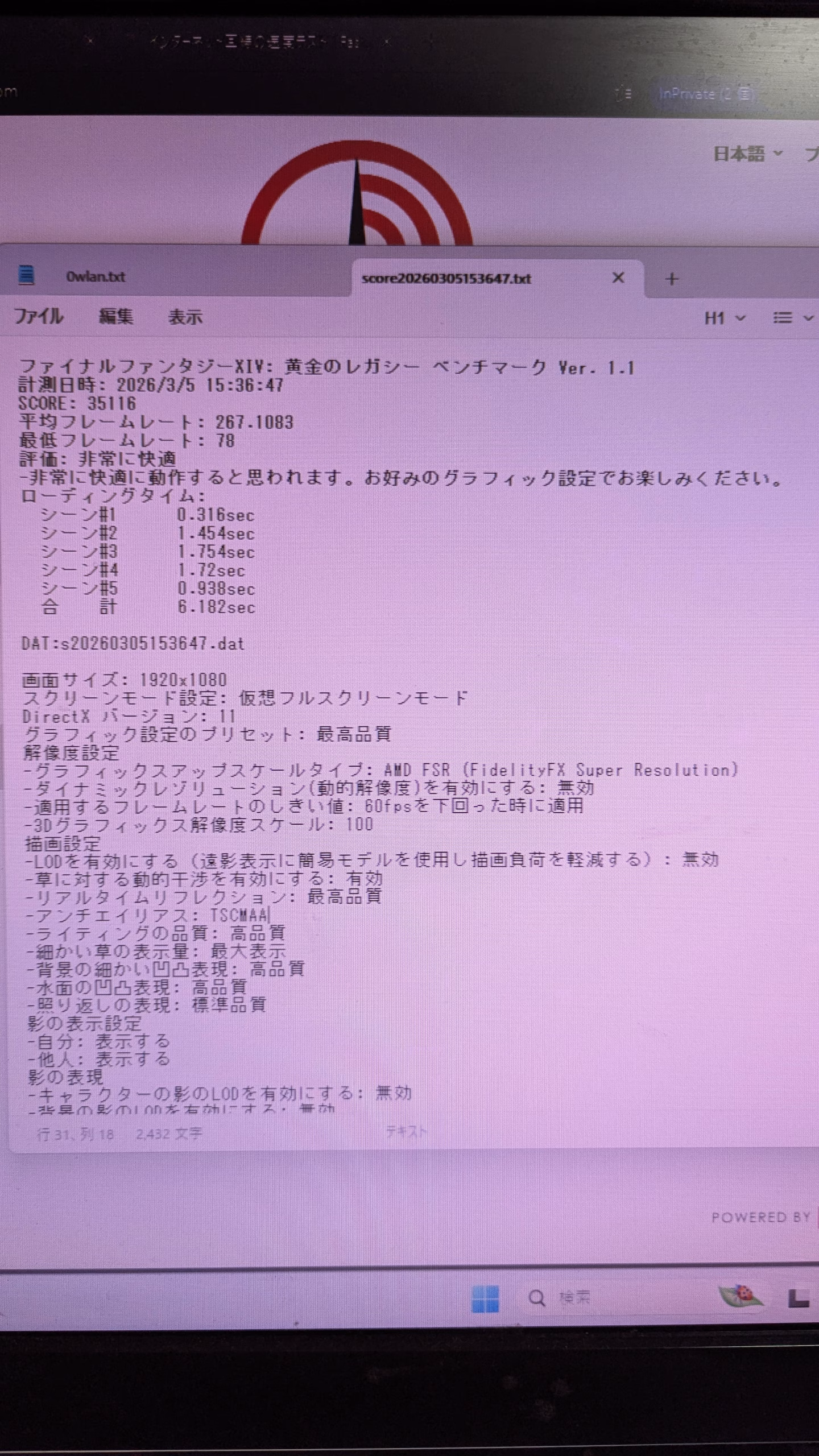 FF14 FHD 最高画質35116 平均フレームレート 267