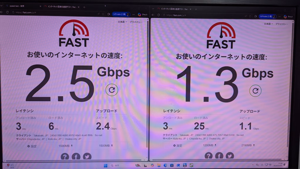 LAN通信速度 画像参照 画像1つ目有線LAN、2つ目がある場合無線LAN