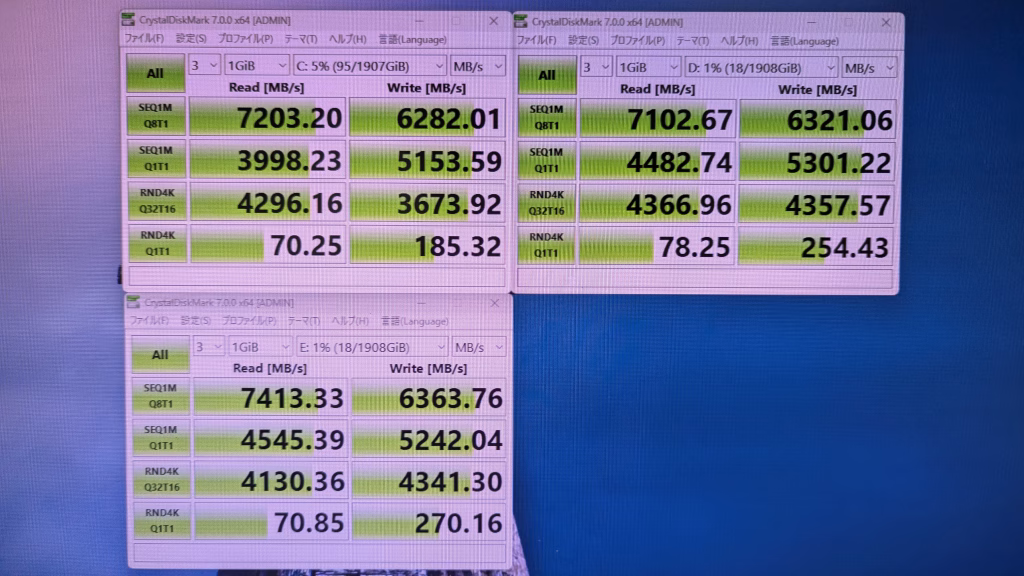 ストレージ読み込み速度 SSD 7203 7102 7413 HDDは省略