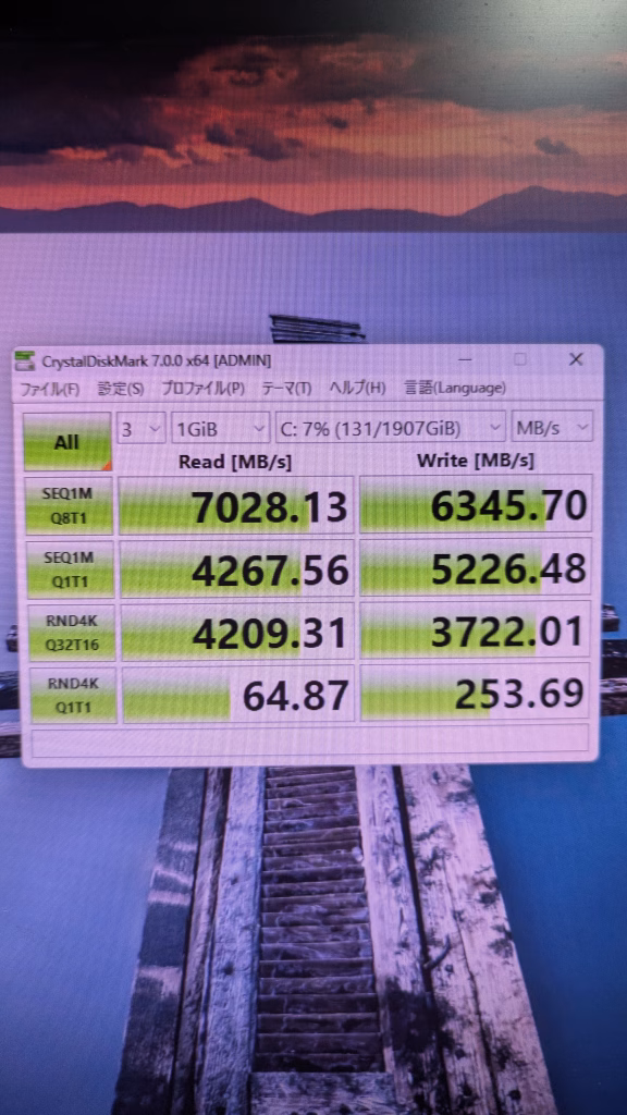 ストレージ読み込み速度 SSD 7028HDDは省略