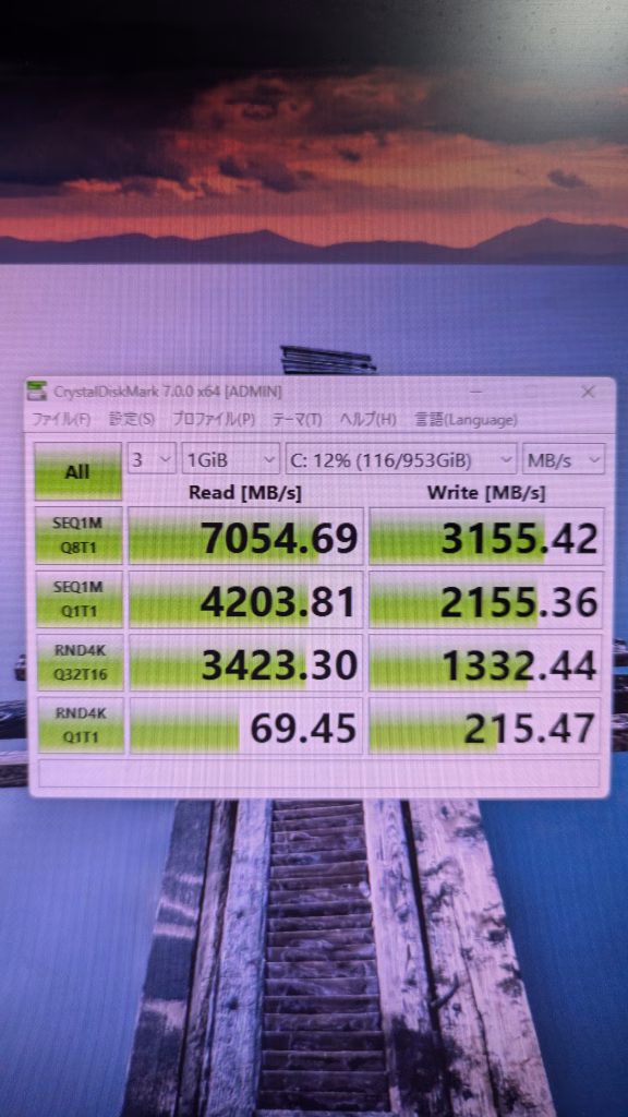 ストレージ読み込み速度 SSD 7054 HDDは省略