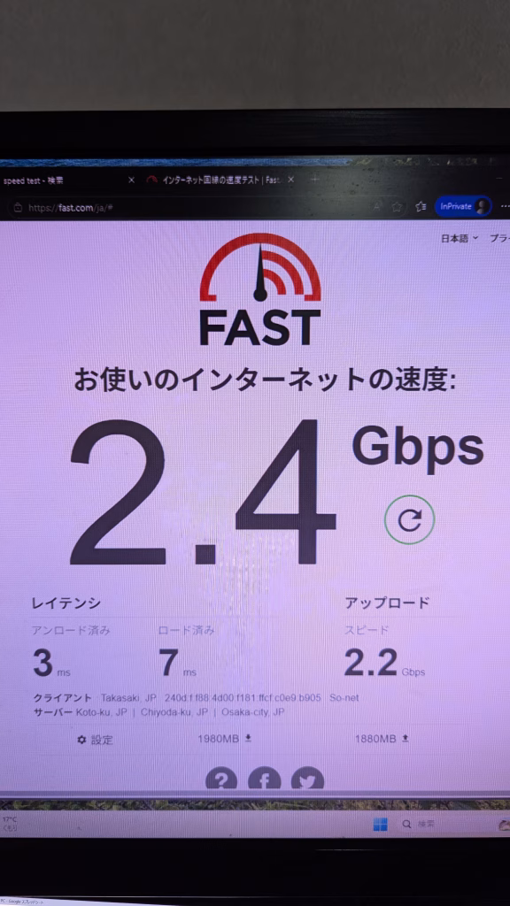 LAN通信速度 画像参照 画像1つ目有線LAN、2つ目がある場合無線LAN