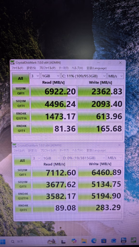 ストレージ読み込み速度 SSD 6922 7112 HDDは省略