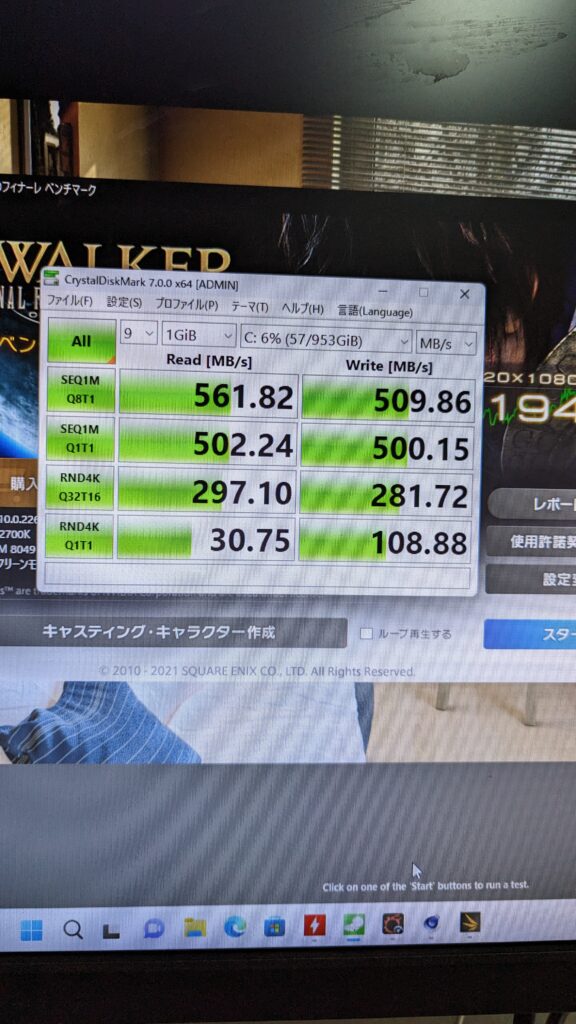 ストレージ読み込み速度 561(SSD)Cドライブ