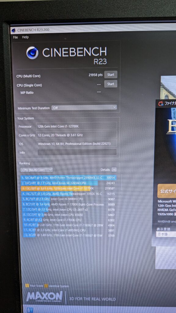 2023/05/24時点のWindows updateとチップセットドライバー、GPUドライバーで計測しております。