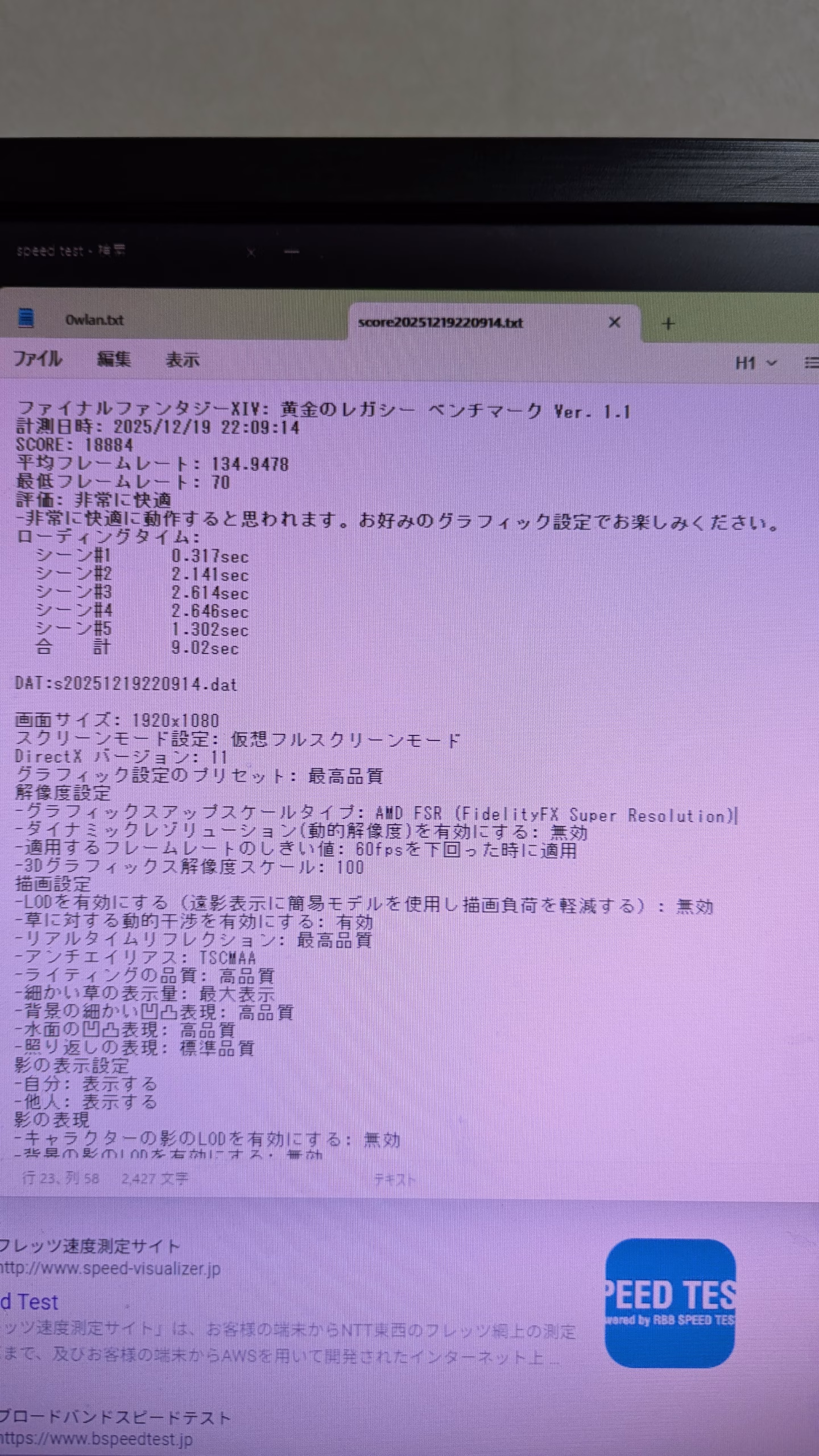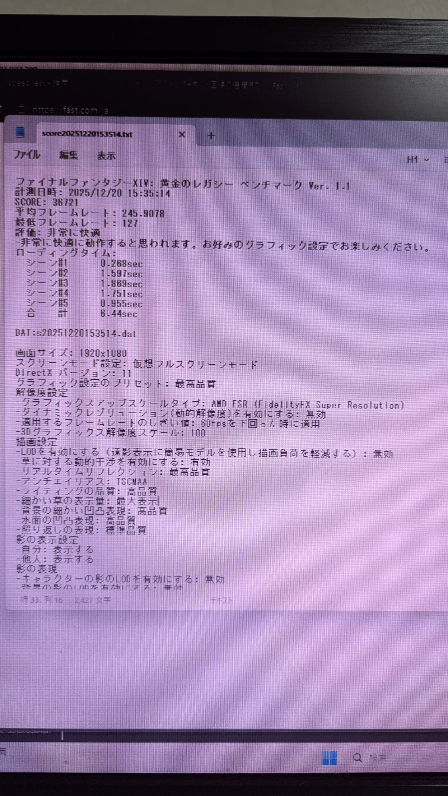 FF14 FHD 最高画質36721 平均フレームレート 245