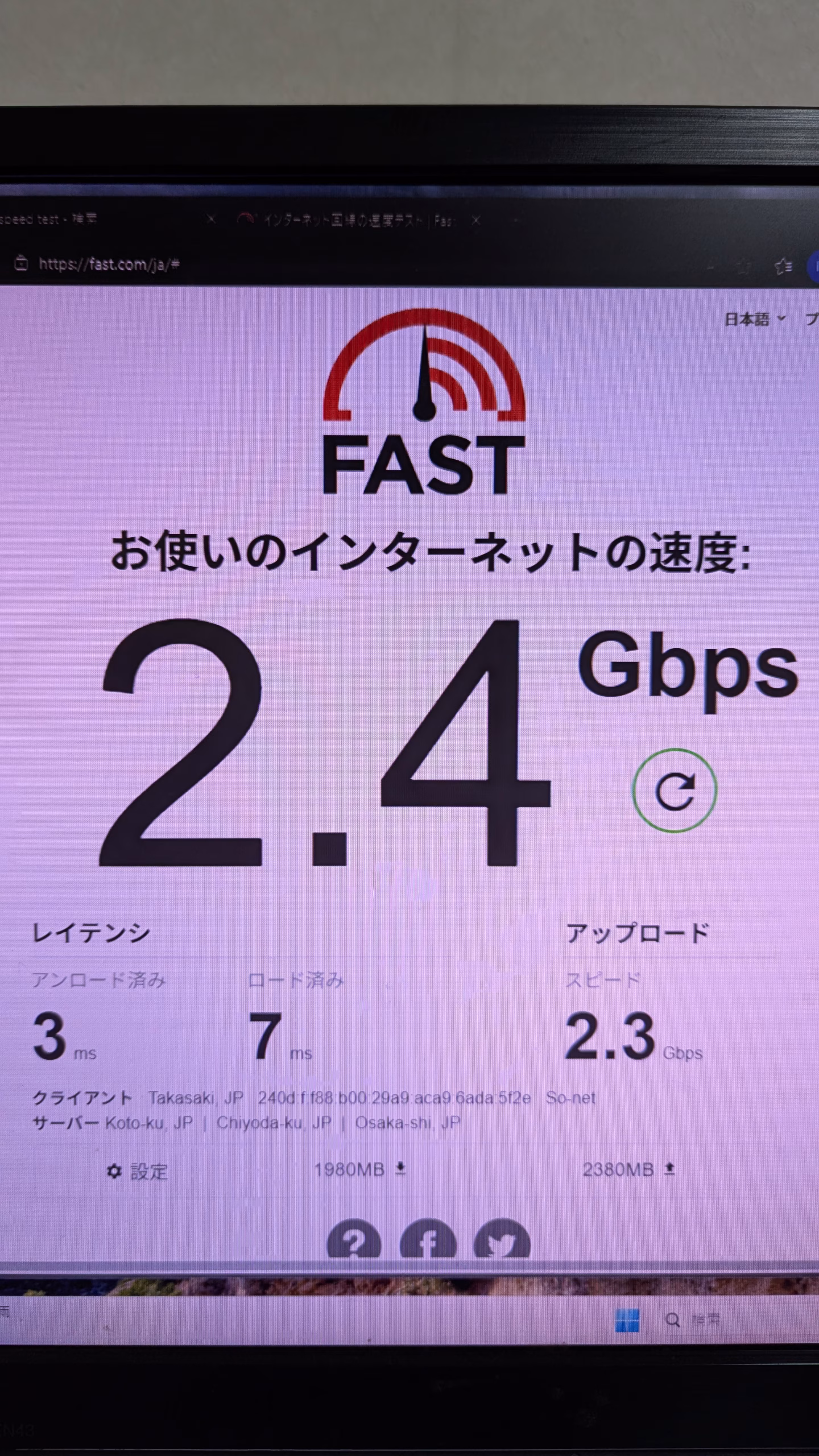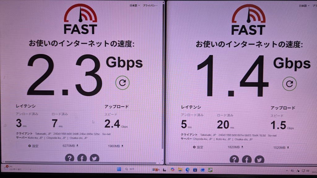 LAN通信速度 画像参照 画像1つ目有線LAN、2つ目がある場合無線LAN